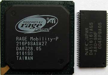Memory clock: 4MB - 66,68MHz, ETC 8MB - 100MHz. Chips only are from Compaq Armada E500 (P3 850MHz).