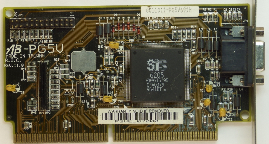 This card has no on-board memory and utilizes shared memory architecture to share main board memory with SiS 5511+/5512/5513 chipset. The physical bus interface is the same as a COASt slot but rotated 180 degrees. The only board known to support this card was the ABit AB-PG5. Memory clock speed (40 MHz to 70 MHz) and shared memory (1 MB or 2 MB) adjustable in the BIOS. Memory clocks and bandwidth depends on used system memory - FPM 55MHz / 220MB/s or EDO 80MHz / 320MB/s