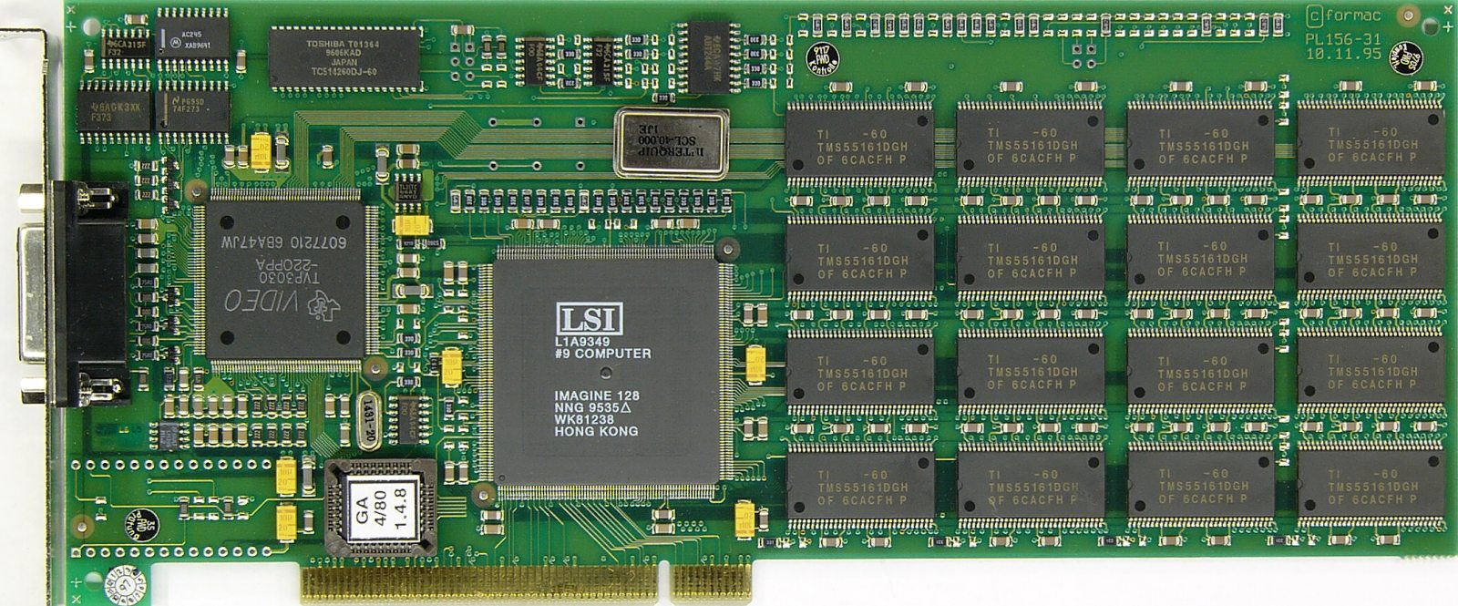 Card is based on Number Nine Imagine 128 released in 1994. It's first 128bit graphic chip.