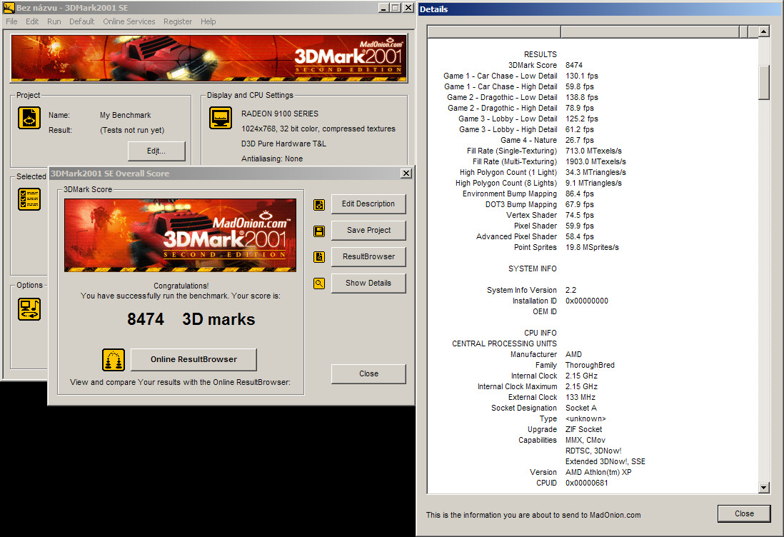 Card is based on R200 core, having mostly 64MB memory on 64-bit or 128-bit bus. Later 128MB cards were on market. Card is basically renamed Radeon 8500LE, a lot of cards have only 64-bit memory bus though.